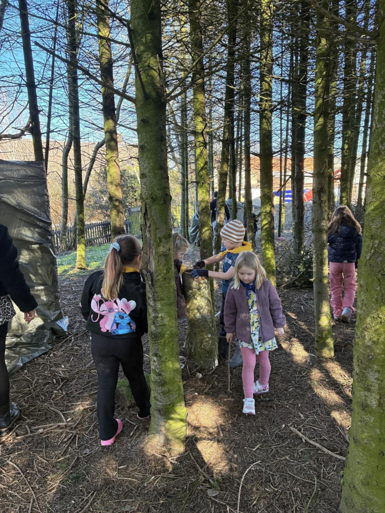 ENDELIG er vi begyndt at få besøg af de nye skolebørn fra børnehaven! De var med i vores naturskole timer, hvor vi først blev inddelt i “spejder-hold” med fine tørklæder. Hvert hold fandt på et navn, og lavede et flot flag. Herefter blev der bygget huler i vores skov. Til slut legede vi alle sammen i hulerne. Vi glæder os allerede til besøg igen på tirsdag.