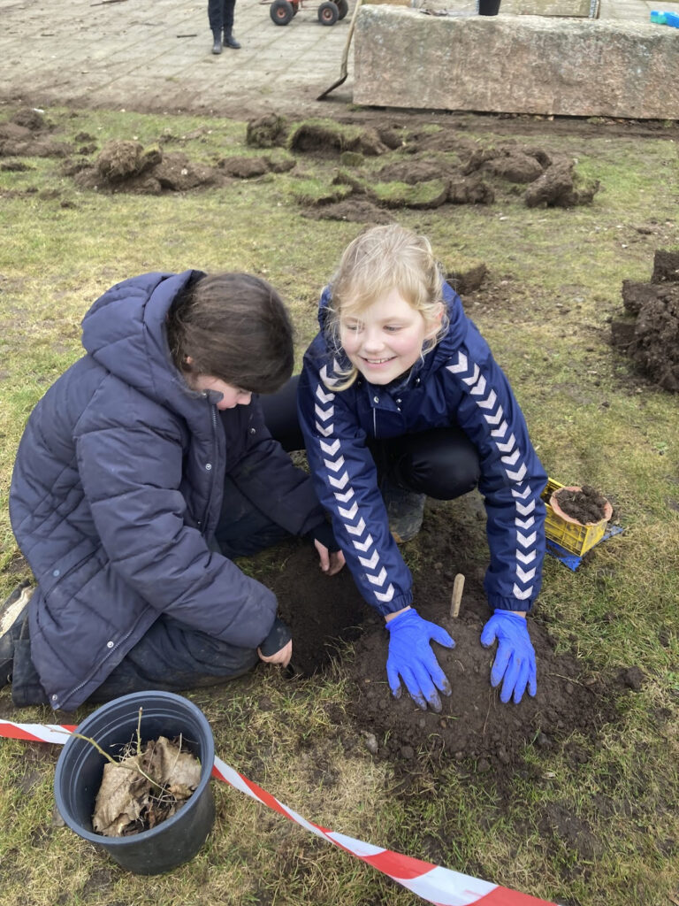 I naturskole timerne er hele skolen i fællesskab startet på at etablere en spiselig skovhave. Tirsdag var herlig, kaotisk, lærerig og effektiv. Vi kom godt i gang, fik afgrænset området, plantet de første træer og en flerfarvet pilehytte, lavet skilte, flyttet og repareret højbede samt kørt en hel trailerfuld møg i. Der var en skøn energi, og vi glæder os til at arbejde videre i næste uge. Fedt at mærke, hvor langt vi kan nå, når alle er med. Flere har allerede doneret jord, møg og planter, og vi håber at nogle af jer ligger ind med noget af følgende, som vi kunne ønske os til haven og skolen generelt.