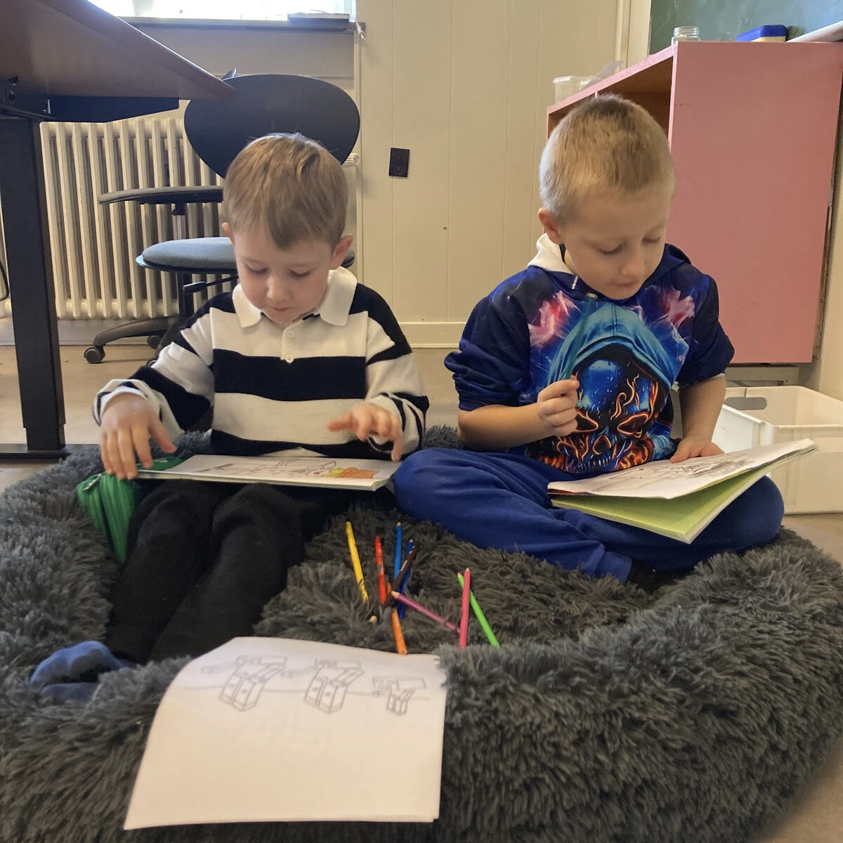 I onsdags havde vi “besøg” af de ældste elever. Denne gang var det de yngste elever, der skulle læse højt for de store – det var de virkelig gode til. Hvis lydene drillede lidt, var de store klar med en hjælpende hånd.