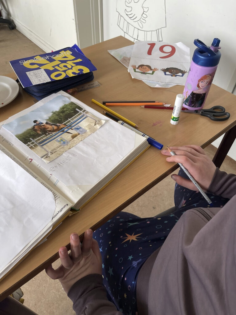 3./4. klasse er gået helt amok med at skrive deres egne romaner. Vi tegner, skriver og printer – og er på alle mulige måder kreative i arbejdet med at finde på historier. Nogle skriver om dyr, nogle om deres eget liv, og andre om glæden ved fiskeri.
