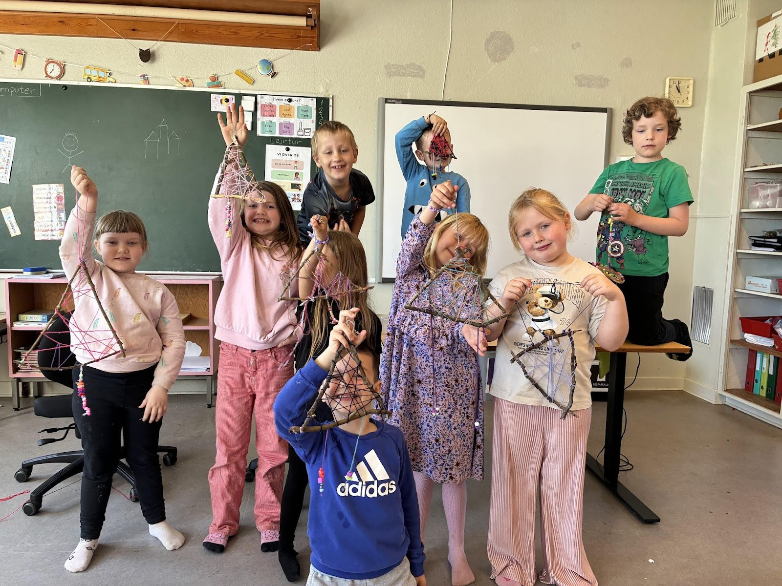 Vi er gået i gang med et kreaprojekt, hvor vi laver garn-uroer. Det er en fantastisk klasse at lave krea med – nogen elsker det, andre hader det. Måske vi er heldige, at nogen af dem er færdige til mors dag.